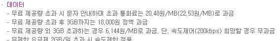 기본제공 데이터 소진 후 ~ 880MB : 종량 과금 880MB ~ 3GB : 미과금 3GB ~ : 종량 과금 |